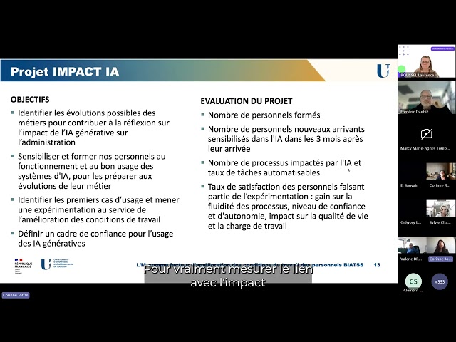 A l’occasion des Rendez-vous de l’Amue, consacrés à l’IA éthique au service des métiers, Corinne Joffre, chef de projet et secrétaire générale d’ANITI a présenté l’expérimentation menée par l’université de Toulouse et plusieurs de ses établissements volontaires à s’engager dans une démarche collaborative afin d’améliorer les conditions de travail des BiATSS en proposant des outils d’automatisation de tâches répétitives et chronophages.